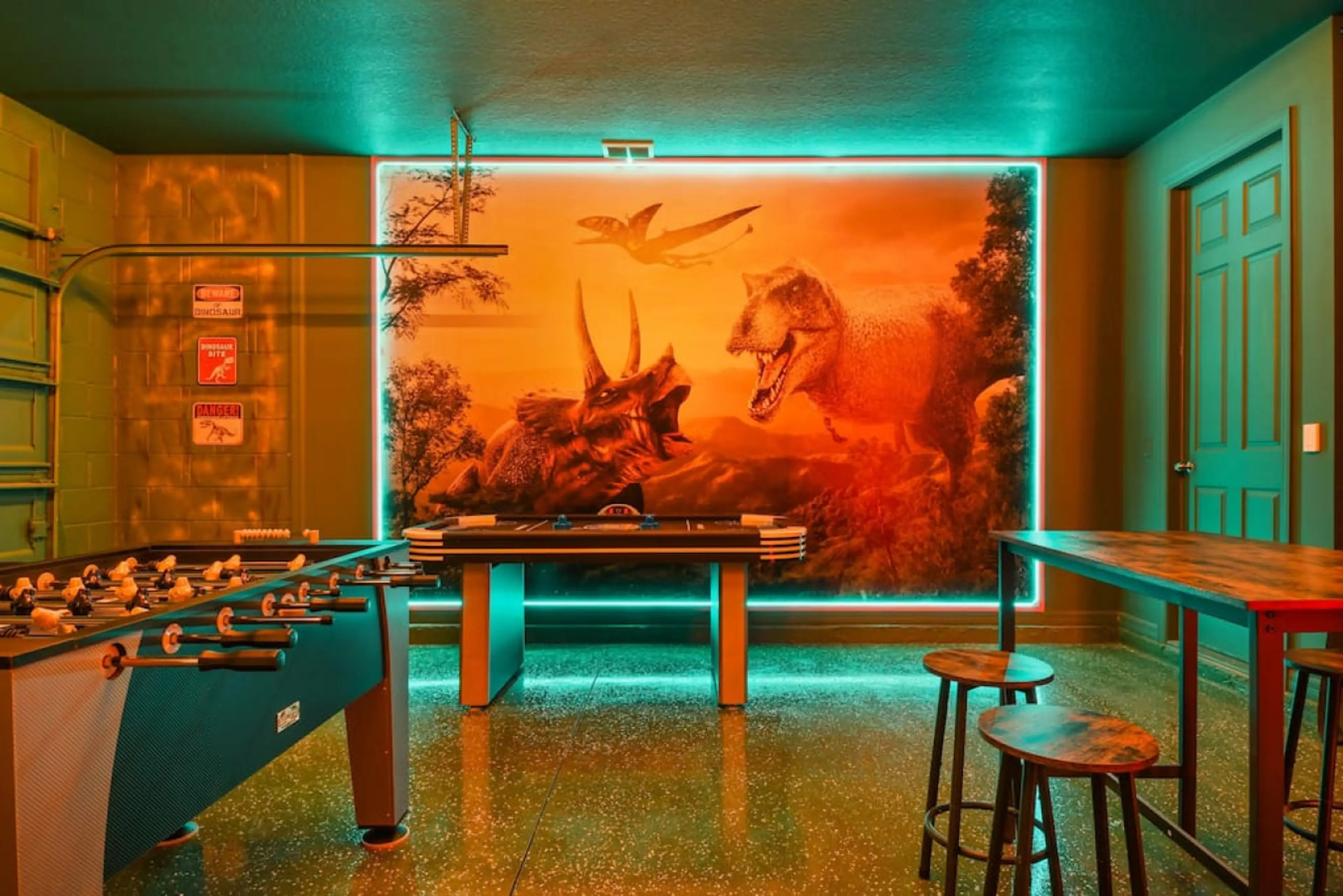 We rented this house for our extended family to stay over Christmas, ages 12 to grandma. It was an outstanding stay. The rooms were perfect for our family groupings. The theme rooms were super fun. Between the pool and dino playroom there was plenty to do. And the sunsets were phenomenal. We paid extra to heat the pool and it was well worth it. As is usual with rentals, the kitchen supplies were lacking, especially sharp knives for veggies and fruit, but that's to be expected, right?! The house was in slightly more secluded area in the development, so it felt a bit more private. Also, the amenities at the club house, pool and spray grounds were awesome. We did not schedule any theme parks and we didn't miss them at all. There was so much to do. The grocery store and Starbucks was close. Airport was a quick commute. And communication with the owner Allen was clear and accurate. We really appreciate how simple the check-in, check-out process was. If we're looking for another multi-family Orlando vacation, we'd all elect to stay in this house again.